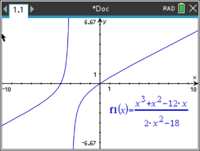 Note: The asymptotes were drawn on the graph AFTER the function was graphed. They were not part of the original graph prepared by the calculator.